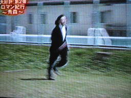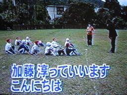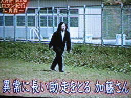 子供たちに幅跳びの見本を見せてやってくれと。頼まれた加藤さん。